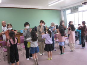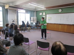 令和7年11月22日(土)七条第三小学校多目的ホールで午前10より11時30分まで「健康すこやか学級」を開催しました。まず、石田会長の開会挨拶の後、高齢サポート・島原の北村さんよりこれから寒くなる時期を迎え入浴や体を温める食事を摂ることが大事ですと話がありました。次に下京区地域介護予防推進センターの八木さんからは冬場の入浴は脱衣場と風呂場を温めてヒートショックを予防することが大切ですと話がありました。 本日のメインイベントは七条第三児童館の児童を招いて高齢者、スタッフを交えて「モルック」で楽しみました。最後は児童たちによる歌や手作りの首掛けを参加者全員、首にかけてもらい大変、盛り上がった楽しい会になりました。