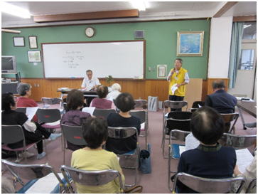 平30年10月6日(土)午前10時より11時15分まで七三小学校の多目的ホールで園芸教室が開催されました。当日は七三学区にお住いの65歳以上の高齢者約50名が参加し、会場がほぼ満席状態になる程の盛況ぶりでした。 まず、北尾会長の開会挨拶の後、本日の講師の紹介がありました。昨年同様、タキイ種苗OBで日本ツツジ・シャクナゲ協会京都支部長の江差正倫氏です。 今年のテーマは「初心者のためのシャクナゲ栽培」と題して・苗木の購入と選び方・鉢植栽培の基本・庭植え時の留意点・手入れと整姿などを詳しく教えていただきました。参加者の皆さんは江差講師の講義を熱心に聴いておられました。講義の後には質疑応答があり大変参考になりました。 最後に、ご参加いただいた皆さんにはシャクナゲの苗木とシャクナゲ栽培の手引書をお持ち帰りいただき喜んでいただきました。 写真はその時の様子です。