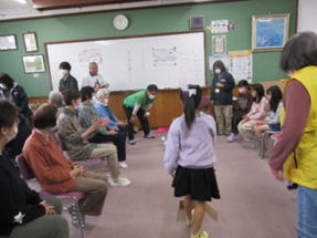 令和7年11月22日(土)七条第三小学校多目的ホールで午前10より11時30分まで「健康すこやか学級」を開催しました。まず、石田会長の開会挨拶の後、高齢サポート・島原の北村さんよりこれから寒くなる時期を迎え入浴や体を温める食事を摂ることが大事ですと話がありました。次に下京区地域介護予防推進センターの八木さんからは冬場の入浴は脱衣場と風呂場を温めてヒートショックを予防することが大切ですと話がありました。 本日のメインイベントは七条第三児童館の児童を招いて高齢者、スタッフを交えて「モルック」で楽しみました。最後は児童たちによる歌や手作りの首掛けを参加者全員、首にかけてもらい大変、盛り上がった楽しい会になりました。