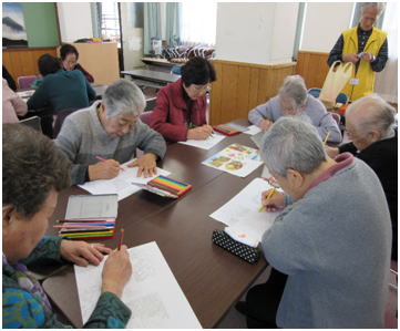 昼からは色鉛筆で秋の草花、風景画に絵付けをして楽しみました。