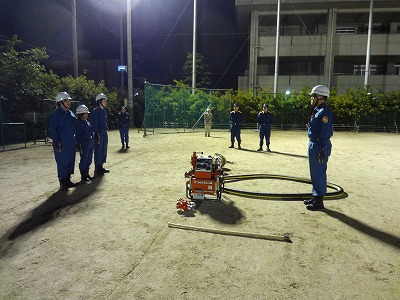 ◆消防団が査閲に向けて七条中学校で夜間練習をしています。(5月1日)